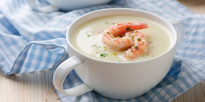 Ингредиенты Приготовление В сотейнике или кастрюле растопите масло на среднем огне. Выложите мелко нарезанные овощи и панцири креветок и поджаривайте несколько минут. Добавьте бульон, сливки, тимьян и мясо креветок. Оставьте примерно четверть креветок на потом. Доведите до кипения, убавьте огонь и тушите ещё 20 минут. Пюрируйте суп блендером до однородной консистенции. Добавьте соль, перец и оставшиеся креветки и варите 3 минуты. Перед подачей украсьте суп рубленой петрушкой. Приятного аппетита !!!