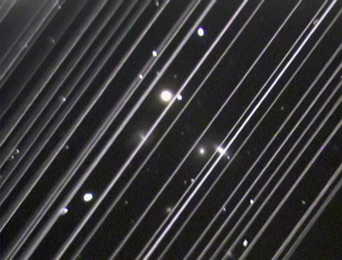 Многочисленные группировки спутников на орбите могут усложнить астрономические наблюдения. Фото сделано в обсерватории Лоуэлла в Аризоне. Наблюдалась группа галактик NGC 5353/4. Но в этот момент через поле зрения телескопа прошла группа спутников Starlink и прочертила эти диагональные полосы. Естественно, подобные снимки не представляют научной ценности. Компания SpaceX (владелец спутников Starlink) прилагает некоторые усилия, чтобы уменьшить яркость своих устройств в небе. Одной из последних идей компании является использование специальных «козырьков от Солнца» на спутниках.