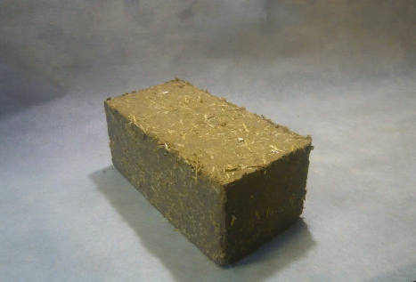 В замес идут глина и навоз в пропорциях 1:1. Всё это заливается водой и размешивается до однородной массы консистенции густой сметаны. Далее, смесь помещается в форму и утрамбовывается. Для трамбовки подойдёт обычная колотушка. После того как блок утрамбовался и сформировался, верх выравнивается и форма снимается.