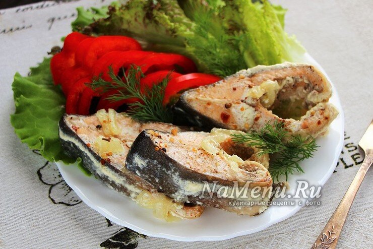 🌱Горбушу выложить на лук. Можно добавить веточки любой зелени