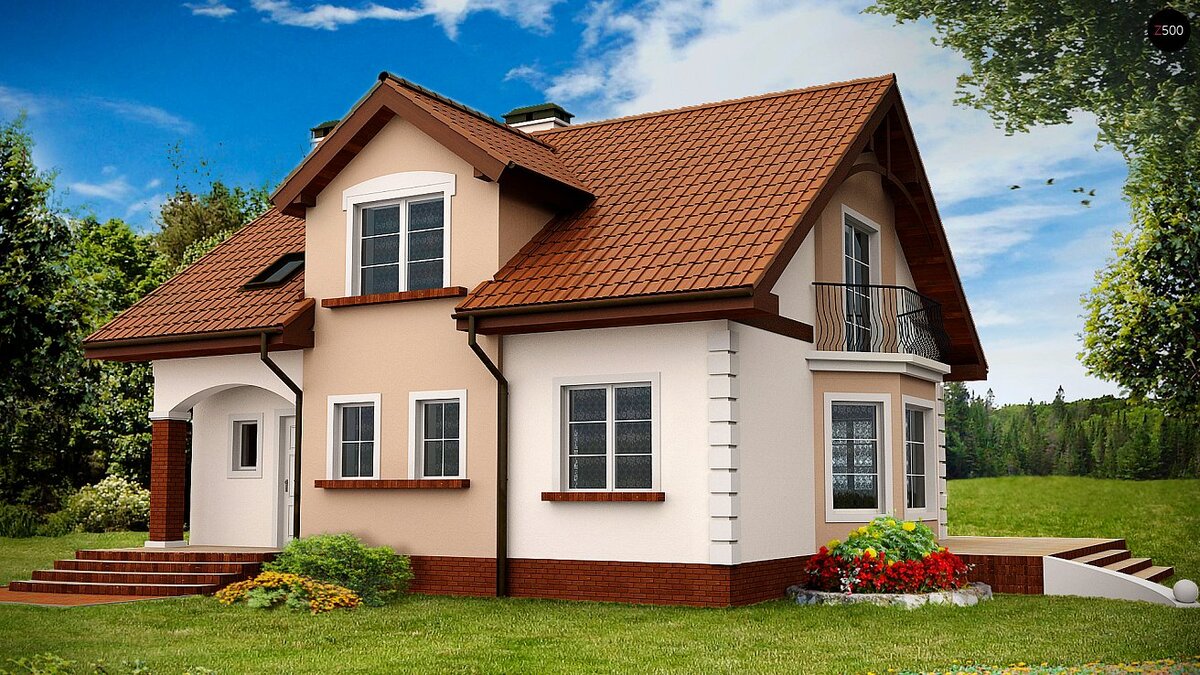 Элегантный дом Z28 выделяется среди прочих проектов своим выдержанным, благородным, классическим дизайном. Архитектурные дополнения в виде мансардных окон, аркады, оформляющей крыльцо, эркера и балкона над ним делают этот дом изысканным и неповторимым.