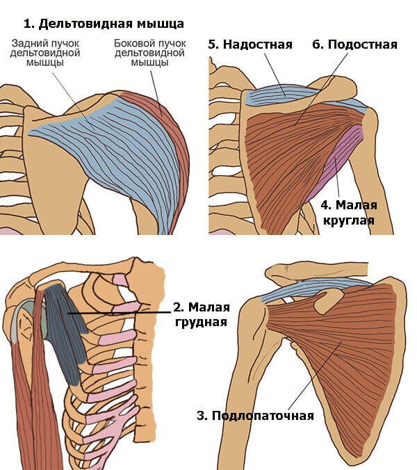 Мышцы плечевого пояса Функции мышц плечевого пояса связаны с функциями мышц груди и отчасти спины. Поэтому разграничение между туловищем и плечевым поясом весьма условно. С изменением очертаний мышц меняются и очертания спины, шеи и груди. И так сейчас рассмотрим дельтавидную мышцу Дельтовидная мышца плеча представляет собой толстую мышцу треугольной формы, которая покрывает плечевой сустав и частично мышцы плеча. Название «дельтовидная» происходит по схожести треугольной формы мышцы с греческой буквой Δ (дельта). Дельтовидная мышца состоит из трёх пучков. Особенности пучков (головок) дельт заключается в том, что все они выполняют разные функции. Функции мышцы Передний пучок дельтовидной мышцы крепится к ключице и поднимает руку вперед (сгибание руки в плечевом суставе), боковой пучок (латеральный) крепится к акромиону лопатки и поднимает руку в сторону (отведение руки). ...Когда мы разобрались с боковым пучком и передним пучком, переходим к заднему пучку. Задний пучок дельт