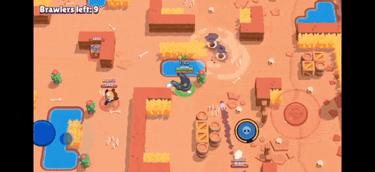 Почему Brawl Stars сейчас популярна? Что это за игра вообще? Brawl Stars – это MOBA-игра от компании Supercell, известной своими мобильными хитами Clash of Clans, Boom Beach и Clash Royale. Геймплей игры сводится к перестрелкам двух команд по 3 человека в каждой в разнообразных игровых режимах. Игроки могут выбрать одного из 34 персонажей, каждый из которых имеет свои навыки и супер-способность. Также, каждый из персонажей имеет свой пассивный навык, который открывается через сундук с добычей (в игре) или можно его приобрести через магазин. 1. Не забывай прятаться Режим: любой В игре два вида атаки – обычная и супер. Для обеих доступен автоматический и ручной режим. В автоматическом режиме нужно просто тапнуть по соответствующей кнопке, и боец сам прицелится и выстрелит в ближайшего врага. Это проще, но гораздо менее эффективно. А если кнопку зажать, можно прицелиться самостоятельно, и ваш огонь станет гораздо смертоноснее. Главная проблема автоматического режима – в нем нет ника