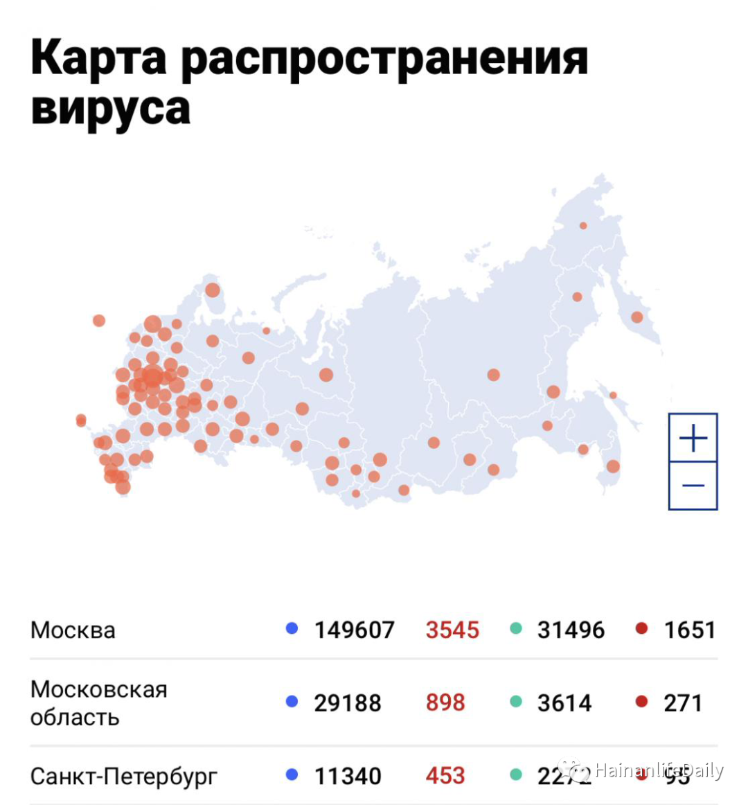 Статистика. По информации на 08:18 утра по Пекину, в мире COVID-19 заболели 4 974 076 человек, жертвами инфекции стали 325 293 пациентов, еще 2 099 850 человек выздоровели.Россия находится на втором месте по числу зараженных.На 19 мая 10:35 зарегистрировано: всего случаев заболевания 299 941, выздоровело – 76 130, смертность – 2 837. Подробности по регионам - следующие: в Москве – 149 607 (1 651 - летальных, 31 496 - выздоровевших), в Московской области – 29 188 (3 614 - выздоровевших, 271 - летальных), в Санкт-Петербурге – 11 340 (95 - летальных, 2 272 – выздоровевших), а также в других городах и областях увеличиваются случаи заражения. Вся «десятка» наиболее пострадавших от COVID-19 стран выглядит так: CША: заболели - 1 569 674, выздоровели – 521 775, умерли – 93 473, тестов на миллион – 38 229. Россия: заболели – 299 941, выздоровели – 76 130, умерли – 2 837, тестов на миллион – 50 383. Испания: заболели - 278 188, выздоровели – 196 958, умерли – 27 778, тестов на миллион – 64 9