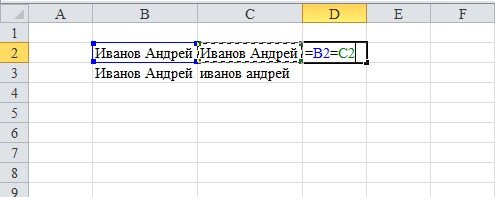 Однако, в этом варианте не учитывается регистр. Т.е независимо от регистра значение данного сравнения будет ИСТИНА, если текст в ячейках одинаковый.