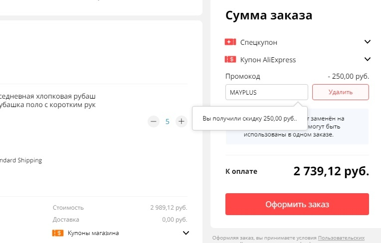 Новый промокод от AliExpress на скидку 250/1500 руб. (для РФ)