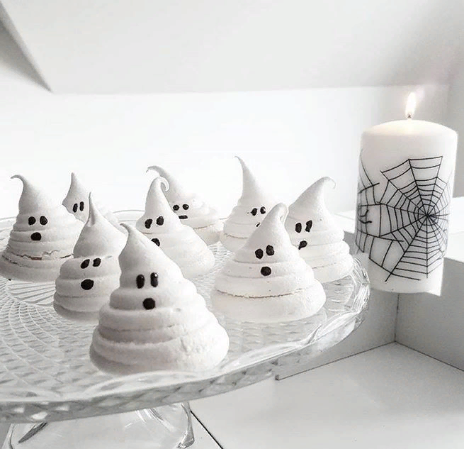 • Отсадите безе-привидения на противень на расстоянии не меньше 3 см друг от друга и отправьте запекаться.