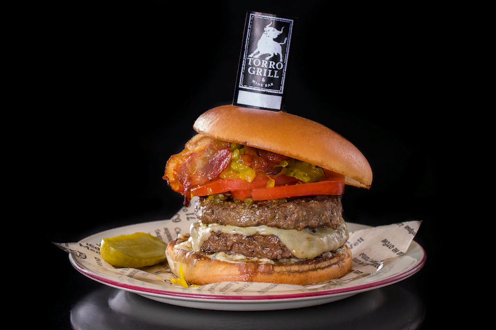 Двойной бургер с огуречным релишем Большой бургер с двумя говяжьими котлетами, ломтиком голубого сыра и пряным огуречным релишем – настоящая мечта любого мужчины-мясоеда. Кстати, релиша вы можете приготовить сразу побольше, остатки поместить в банку с плотно закрывающейся крышкой и держать в холодильнике. За счёт большого количества уксуса он может храниться около месяца. Такой релиш станет оригинальной альтернативой привычным соусам и прекрасно подойдёт не только для бургера, но и к обычным котлетам, стейку, даже к приготовленной на пару куриной грудке. ШАГ 1 Для огуречного релиша: нарежьте все овощи мелким кубиком. Соедините ингредиенты в кастрюле и варите на малом огне 20 минут, в конце добавив соль и сахар по вкусу. ШАГ 2 Обжарьте две говяжьи котлеты на электрогриле или открытом огне. ШАГ 3 Обжарьте на сковороде ломтики бекона. На этой же сковороде подогрейте булочки с внутренней стороны. ШАГ 4 Выложите одну котлету на нижнюю часть подогретой булочки, сверху положите голубой сыр