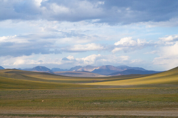 К Монголии мы подъехали по Чуйскому тракту со стороны Горного Алтая. Последний российский населённый пункт - это Ташанта. Первое, что видишь в Монголии - посёлок Ногооннуур. Здесь нас с визгом встретила и сопровождала местная ребятня. Дети как дети, если не считать, что всю дорогу они играли в пионербол телячьим черепом.