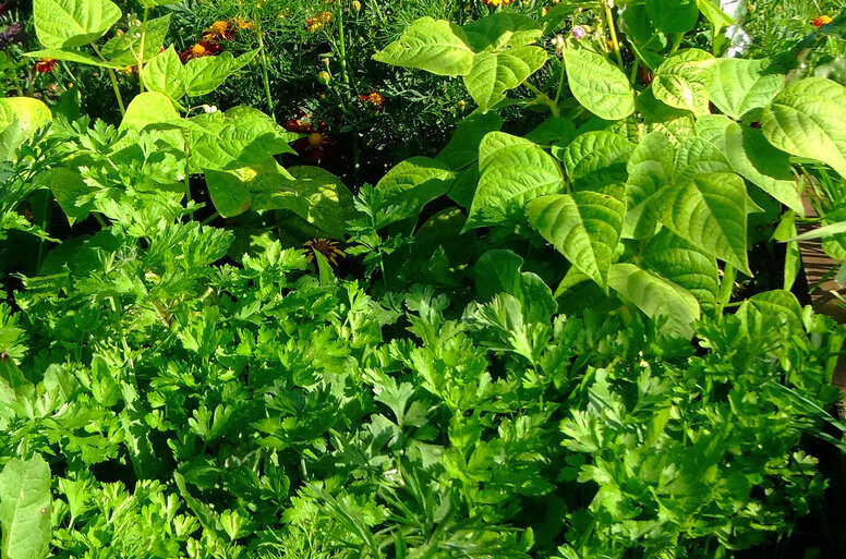 В прошлом году я заметила, что зеленные культуры - укроп, руккола, редис, салат, базилик, высеянные в теплицу, дают более ранний и пышный урожай. Этому способствует организованный капельный полив, защита от вредителей, ветра, холода и других неблагоприятных внешних условий. Поэтому в этом году я целенаправленно делаю зеленую грядку в теплице. Особенно это назрело из-за нашего холодного мая - даже лук не растет в перо. На грядке у меня уже высажены рассадой пекинская капуста - 100 пеленок и Нежность (посеянные букетным способом, об этом есть у меня публикация - Посев капусты "букетным" методом). А запланированы у меня для этой грядки еще петрушка, укроп, рукола, редис, салат, кинза и еще, что влезет - набрала для посадки кучу пакетиков и бирочек. Редис и руколу решила посеять между грядок с капустой. Обычно они быстро растут и идут в еду, не помешают капусте. Дальше пустой участок грядки размечаю на ряды и проливаю их водой. Сею каждую культуру, отмечая биркой. После посева, еще раз п