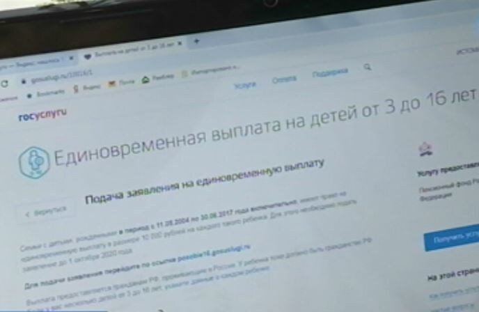На 12 миллионов российских детей в возрасте от 3 до 16 лет оформлены заявления через портал «Госуслуги» на получение выплаты, обозначенной президентом страны. Всего мера коснётся 22 миллионов несовершеннолетних. Господдержку семьи начнут получать с 1 июня. Сейчас региональные управления Пенсионного фонда активно принимают сведения от родителей. Наталья Истомина – мать двоих детей. Портал госуслуг – ярлык на её домашнем компьютере. Когда узнала о праве на единовременную выплату в размере 10 тысяч рублей за каждого ребёнка, подождала несколько дней и без труда оформила заявление.