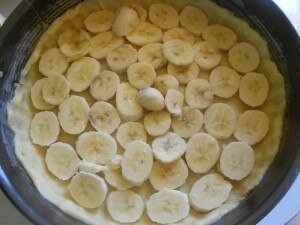 Такой вкусный пирог с БАНАНОМ. И делать его очень легко. Для теста: -200 гр. муки, 1 яйцо, 1 ст. л. сахара, 1 ч. л. разрыхлителя, 100 гр. сливочного масла. Для заливки: -200 гр. 15-20 % сметаны, 1 яйцо, 2-3 ст. л. муки, 80 гр. сахара. и 2 БАНАНА. Незабудте дочитать до конца. Кушаем и худеем в удовольствие. Готовим: Сахар взбиваем с яйцом, добавляем разрыхлитель и размягченное сливочное масло. Добавляем муку и хорошо размешиваем. Получается тесто. Бананы режем колечками. Готовим заливку: яйцо взбиваем с сахаром, мукой и сметаной. На дно смазанной формы распределяем тесто, формируя бортики. Выкладываем на тесто кружочки бананов. Следом выливаем яично-сметанную смесь. Ставим в разогретую до 180 градусов духовку на 25 минут. Худейте с удовольствием.