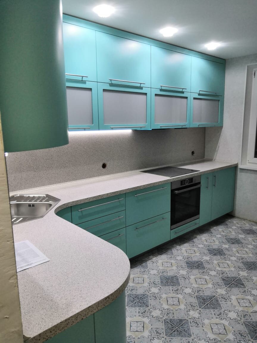 Кухонный гарнитур + встроенная техника + столешка из камня