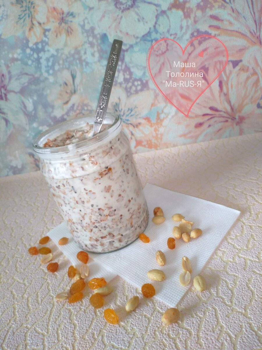 Возьмите банку или контейнер подходящего размера. На дно кладём сухофрукты, орехи, семечки на ваш вкус. Так же кладём 3-4 ст.л овсянки долгой варки. Крупу можно предварительно немного обжарить на сухой сковороде. Все перемешиваем и заливаем йогуртом без добавок или домашним кислым молоком (рецепт обязательно будет в следующий раз). Нашу ленивую кашу отправляем в холодильник на ночь. Утром вкусно и полезно завтракаем, приятного аппетита!