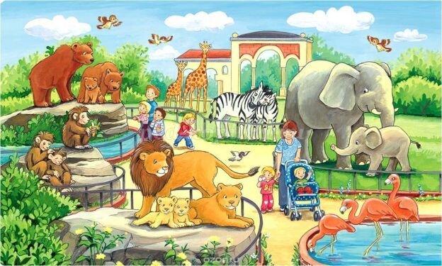 Живут там тигры, зебры, страусы, слоны.