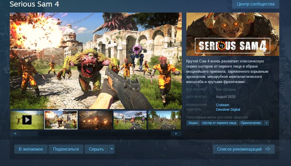 В стиме появился предзаказ игры Serious Sam 4, дата выхода игры запланирована на август 2020 года. Стоимость предзаказа Serious Sam 4 составляет 725 рублей, а предзаказ Serious Sam 4 Deluxe издания 930 рублей. При покупке Deluxe версии вы получите: 1 Эксклюзивный скин для оружия в виде классического Автомата Томпсона. 2 Оригинальный игровой саундтрек от Дамьяна Мравунац в форматах .mp3 и lossless. 3 Цифровой артбук, набитый концепт-артом, рендерами моделей и эксклюзивными постерами. Немного об этой игре: Человечество находится в осаде, орды Ментала распространяются по всему миру, уничтожая остатки сломленной и разбитой цивилизации. Последнее препятствие на пути захватчиков - Армия Обороны Земли, возглавляемая Сэмом Стоуном по прозвищу Крутой Сэм и его вооруженным до зубов отрядом солдат.