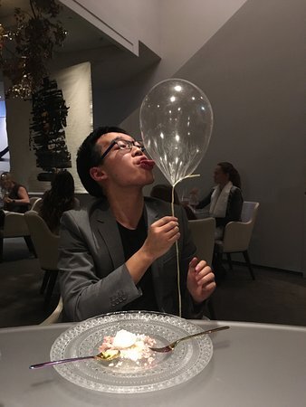 Так что десерт является еще и своеобразным аттракционом. Сделан воздушный шарик из сахара с добавлением натуральных фруктовых эссенций. Посетители ресторана в восторге.