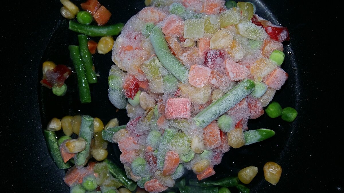 Хочу поделиться рецептом быстрого гарнира из морозилки. Нам понадобится Отвариваем рис до полуготовности. Я взяла рис в пакетиках. Ставим на огонь сковороду. Наливает столовую ложку масла и кладём нашу заморозку. Добавляем немного воды. Тушим минут 5. Далее туда же добавляем рис. Хорошенько перемешиваем и добавляем соевый соус. Не много. Обжариваем смесь до испарения жидкости. Готово! Приятного аппетита.