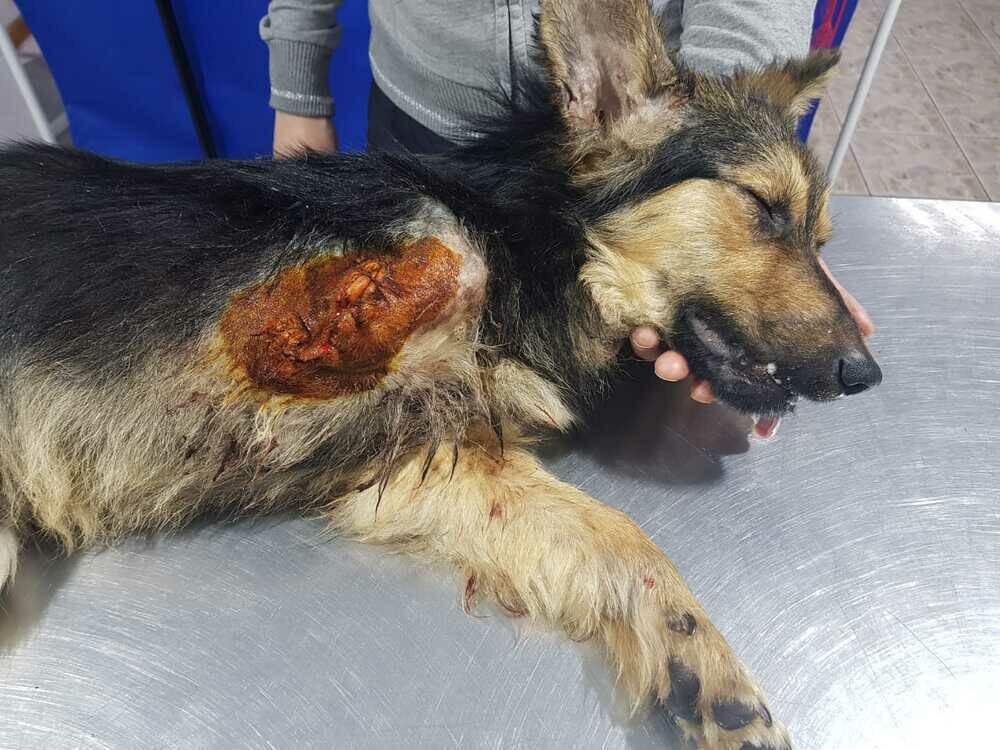 Когда он подошел поближе, волонтёры обнаружили, что она неестественно висит и что на ней огромная рана. Сразу было принято решение отвезти малыша в ветклинику.