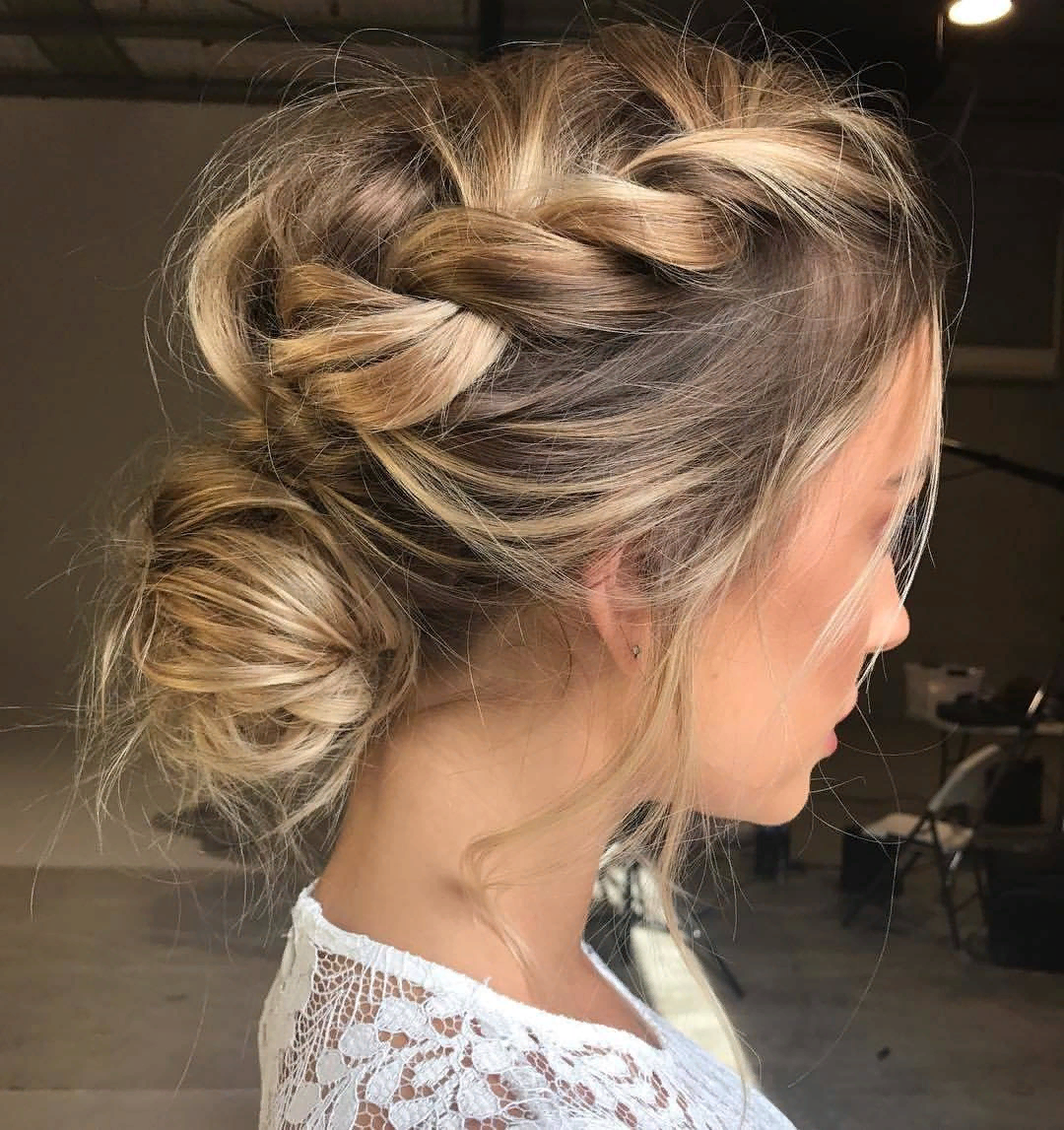Низкий пучок из косичек: быстрая прическа на каждый день