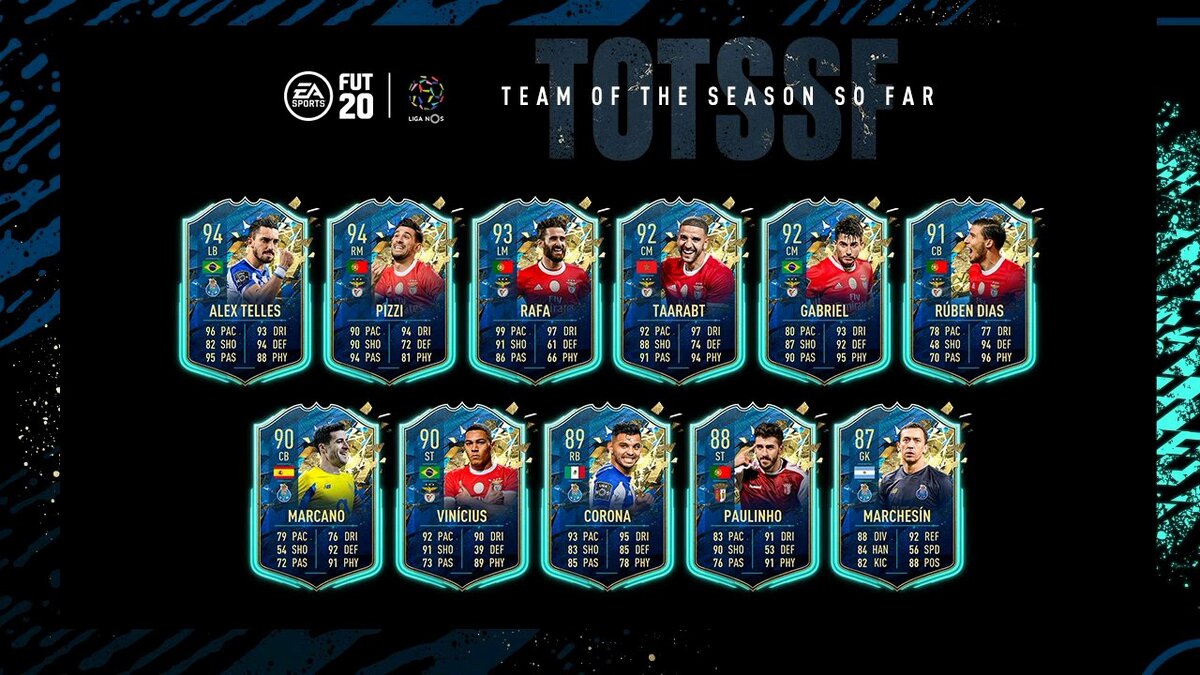 Привет всем любителям симулятора Фифа 20 от ЕА спортс. Вчера в наборах и на трансферном рынке появилась команда лучших игроков чемпионата Португалии по футболу. Давайте разберем эту команду и посмотрим на статистику этих игроков по ходу сезона 19/20, а вы скажите заслуженно ли включены эти игроки в команду года! Лучший игрок этой команды левый защитник "Порту"