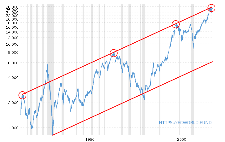Но, по факту, мы с вами видели, что происходит. Фондовый рынок в рамках 100-летнего тренда: