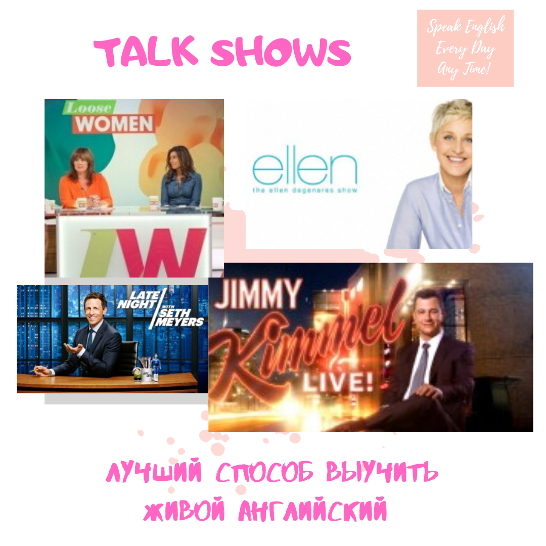 Популярные и юмористические передачи без сомнения являются хорошими помощниками тем, кто учит английский язык. Вы также можете смотреть сериалы, фильмы, слушать песни и читать шутки. Однако, если мы говорим о ЖИВОМ языке нации с ее культурой и юмором, то это наверняка TALK SHOWS! В каждом Talk show есть ведущий, который в качестве гостей приглашает знаменитостей и берет у них интервью. Они обсуждают новые проекты, играют в игры и импровизируют коротенькие смешные сценки. Внимание зрителей приковано к таким шоу либо из симпатии к ведущему, либо к героям, а иногда и ко всем вместе. Из-за большого количества гостей и видов активности, такие шоу еще называют “variety shows”. 5 причин почему Talk show – превосходный источник живого языка: Многие люди, изучающие английский по телевизору, могут не согласиться с этим выбором, предпочитая SITCOMS (situation comedies). Да, эти шоу смешные, но участники следуют четкому сценарию и попадают в достаточно необычные ситуации. Итак, кра