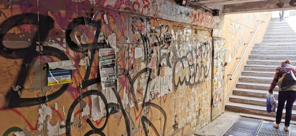 В самом центре города, на самом оживленном перекрестке в Смоленске есть подземный переход. Все бы было хорошо и статьи бы этой не было, если бы не создавалось ощущение, что, спускаясь по ступенькам вы спускаетесь в ад. И ладно бы такой переход существовал бы где-то на задворках города, но нет. Он существует прямо в его центре, добавляя в без того плачевную картину окружающей действительности дополнительные нотки приближения апокалипсиса. ПОДЗЕМЕЛЬЕ Вот по-другому это место не назвать. Спустившись в подземный переход, ты себя ощущаешь в каком-то фантастическом фильме а-ля Безумный Макс или Водный мир. Света нет, стены покрашены в бледно-желтые цвета. И хорошо бы эти цвета хотя бы было бы видно, но к сожалению, они все замазаны краской из баллончиков, отдаленно напоминающие надписи. Хотя многие подростки, почему-то такое искусство называют граффити. Но в данном случае это скорее антиграффити. Чем-то напомнило Грецию это все. В Афинах весь город такой. Хорошо хоть в Смоленске только пе