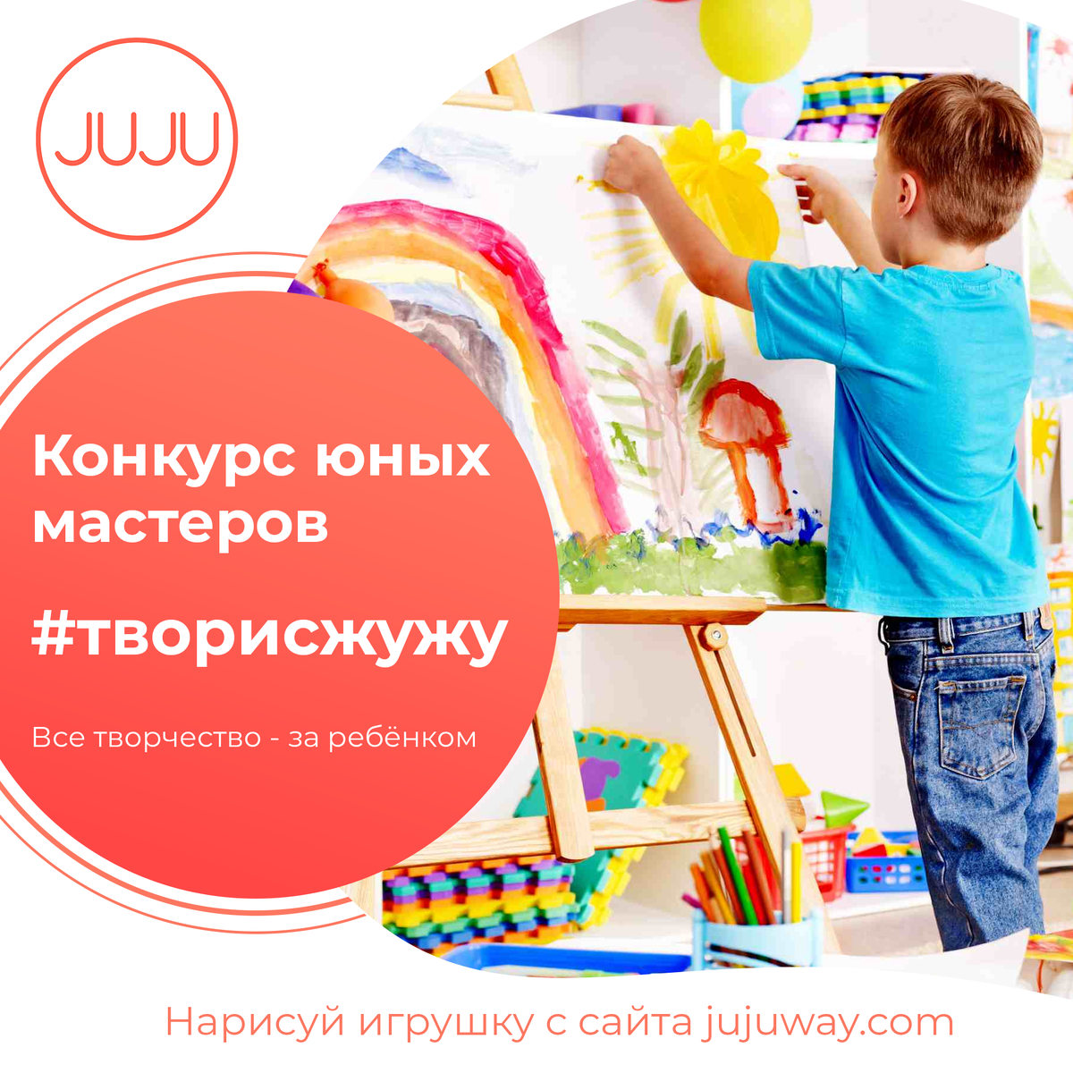 Мы ценим детское творчество и дарим подарки ко Дню Защиты детей🎁 Принять участие могут все дети до 18 лет из любого уголка России. Условия конкурса: 1. Зайти на сайт https://jujuway.com/ и выбрать любую понравившуюся детскую игрушку🧸 2. Нарисовать, слепить, сделать аппликацию - любую поделку - копию понравившейся игрушки. 3. Сделать фотографию получившейся поделки и выложить ее в Инстаграм (пост), подписав «участвую в конкурсе от @talk.juju, поставить хештег #творисжужу» ❗️и на фото отметить наш аккаунт. Итоги подведём 1 июня по хештегу #творисжужу по наибольшему количеству лайков❤️ 10 призовых мест: 🎁 1 место подарочный сертификат juju номиналом 2.000₽ 🎁 2-10 места - подарочные сертификаты juju номиналом 500₽ каждый На подарочные сертификаты можно купить изделия ручной работы от мастеров JUJU на свой вкус👍🏻 Успевайте, время осталось не так много🌪 Уже вовсю рисуют: Пусть ваши дети и дети ваших знакомых присоединяются к нам #творисжужу