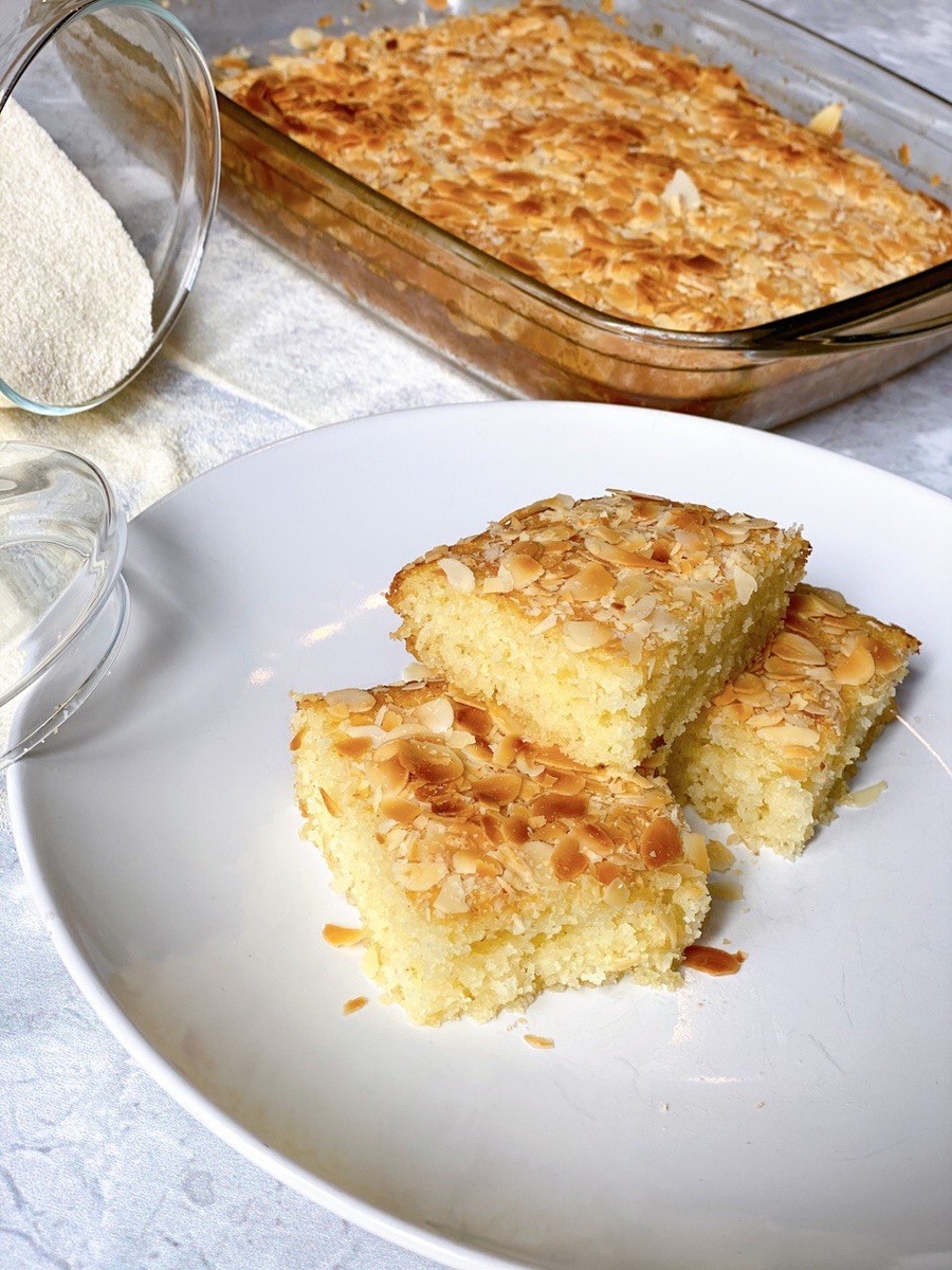 «Манник» с миндальными лепестками Историки считают, что появление первого манника относится к 12-13 векам, к тем временам, когда манная крупа стала доступна практически каждой семье. Из нее готовили супы, каши, а уже позже стали делать выпечку. Довольно интересно, что рецепт манника не затерялся в веках. Хозяйки его любят за простоту приготовления, а также за то, что пирог никогда не подгорит. Есть и другая версия появления рецепта. Считается, что его завез из арабских стран некий путешественник. На Востоке в то время готовили похожий пирог под названием «Басбуса», который появился задолго до появления манной крупы в Древней Руси. Классический пирог-манник – любимое блюдо детей и взрослых. На его приготовление уйдет совсем мало времени, а необходимые продукты всегда найдутся под рукой. На основе приведенного рецепта можно создать свои собственные, экспериментируя с продуктами или различными добавками. Выпечка на скорую руку всего из 6/7 ингредиентов без муки ;) Нам понадобится : К