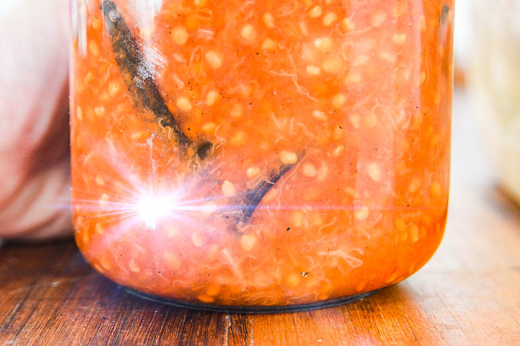 6. Поставил на медленный огонь, снял пену и в конце добавил несколько стручков ванили.