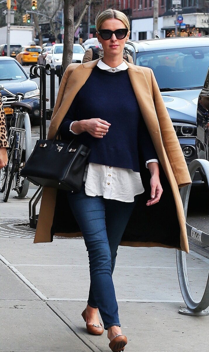 Знаменитости постоянно используют при создании своих образов именно этот трюк. Возможно, это не очень практично, зато смотрится весьма эффектно. Можно позволить себе пройтись в таком виде по парку, от дома до машины или прогуляться по магазину. Небрежно накинутая на плечи верхняя одежда немного стесняет движения рук и заставляет нас действовать аккуратнее. Из-за боязни потерять милое сердцу пальто движения автоматически становятся более плавными и грациозными.