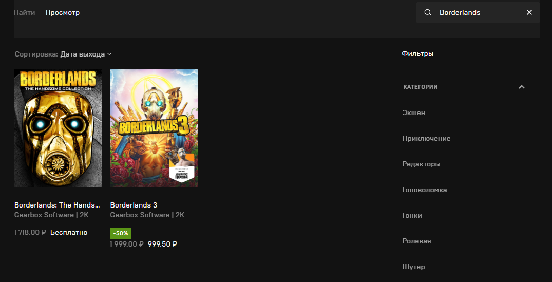1) Для того чтобы получить игру заходим на свой аккаунт EpicGames и в поиске вводим Borderlands, затем нажимаем на первую игру. Либо переходим по данной ссылке: https://www.epicgames.com/store/ru/bundles/borderlands-the-handsome-collection 2) После перехода на страницу с игрой нажимаем "Получить" и игра полностью ваша на всегда. 3) После того, как нажали зелёную кнопку "Получить" на её месте должна появиться жёлтая надпись "В коллекции". Вот и всё! Игра полностью ваша на всегда! BORDERLANDS: THE HANDSOME COLLECTION содержит: Распродажа заканчивается 04.06.2020 в 19:00 !