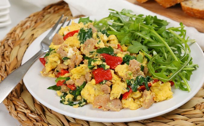 Итальянская яичница с колбасой