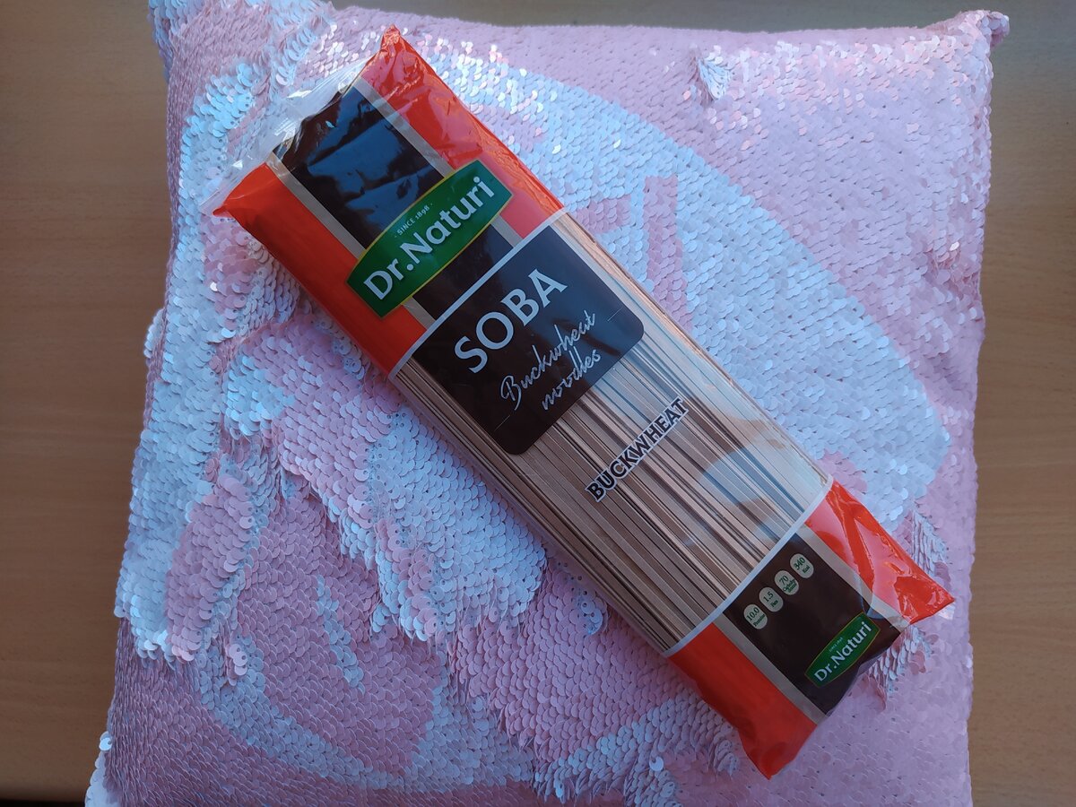 Приветствую Вас, уважаемые Читатели! Как и обещала, подготовила обзор гречневой лапши "Soba", купленной в "Фикс прайсе" за 28 руб. 50 коп. Изготовитель: ООО "Объединение Союзпищепром", город Челябинск. Обратите внимание! Лапша изготовлена из пшеничной хлебопекарной муки высшего сорта. Она из мягких сортов пшеницы. Поэтому, если Вы трепетно относитесь к своей фигуре то.... всё равно кушайте, потому что от одной порции макарон ещё никто не растолстел. Вторым пунктом в составе указана гречневая мука, следом- вода. Белки: 10 гр Жиры: 1.5 гр Углеводы: 70 гр Вот такой симпатичный светло-бежевый венчик: Она не очень твёрдая, если зубы хорошие, можно и так маленечко погрызть. Моя "МоЖга" показала длину 24 см. Во время варки вода сильно запенилась. Сняла пену, убавила огонь. Несмотря на то, что лапша не из твёрдых сортов пшеницы, - она не слиплась. Ничего промывать не надо. Просто добавьте маслице. Что со вкусом: Нам понравилась. Похоже на домашнюю лапшу, но с привкусом гречки. Только