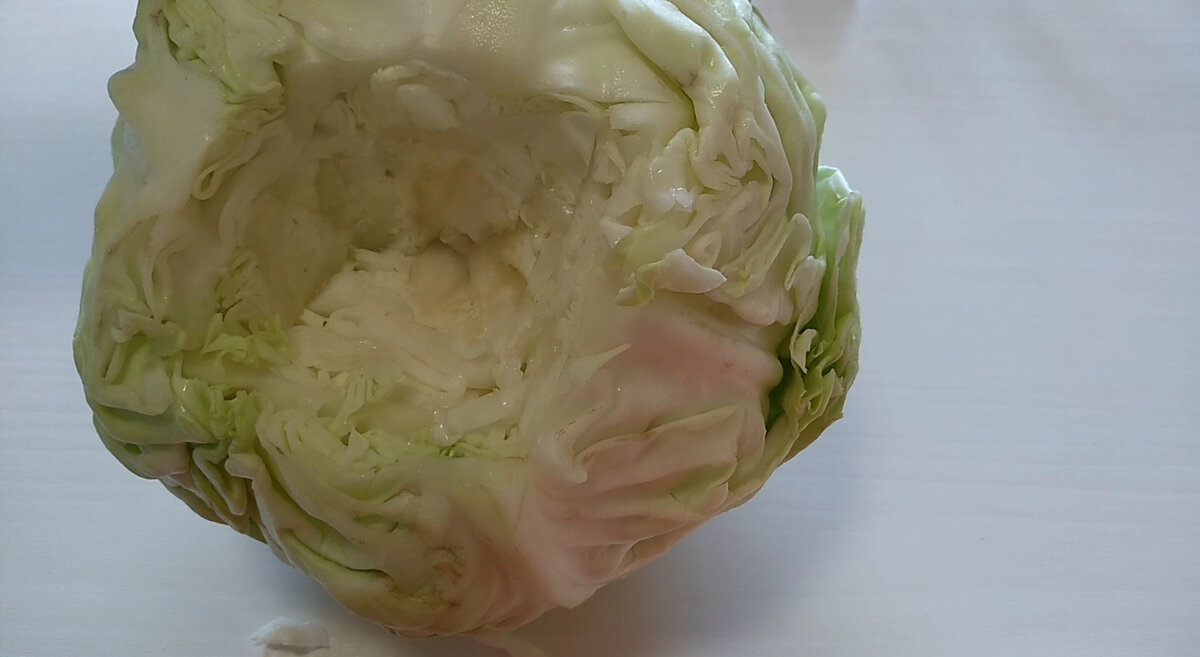 Берём качан капусты, вырезаем кочерыжку. Кладём в кастрюлю добавляем 1 ч л соли, заливаем водой, ставим на плиту и бланшируем капусту до мягкости,