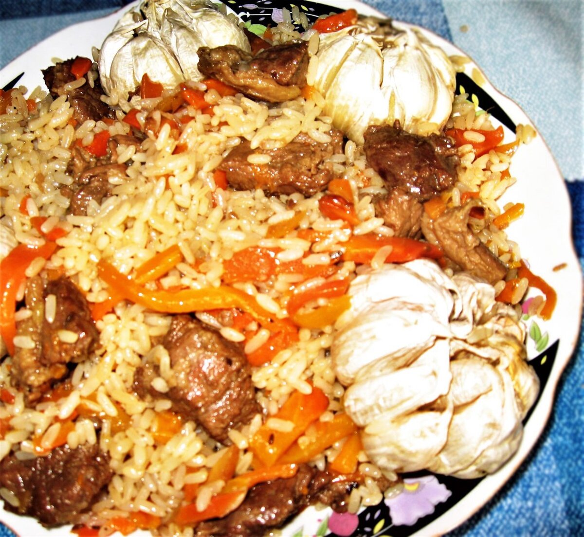 Таджикская кухня очень разнообразна, но это блюдо вне конкуренции. 📝Ингредиенты ✔ 1 тушка зайца беляка; ✔ 0,9 килограмма круглозёфрного риса, лучше специального сорта для плова; ✔ 0,8 килограмма средних морковок; ✔ 0,5 килограмма репчатого лука; ✔ 3 головки чеснока; ✔ 100 миллилитров хлопкового или обычного растительного масла; ✔ 40-50 грамм соли; ✔ 2 чайные ложки молотого чёрного перца; ✔ 3 чайные ложки сушёного барбариса; ✔ 2 чайные ложки зиры; ✔ вода. 🍴Способ приготовления Предварительно, разморозьте тушку зайца в обычной камере холодильника, нарубите на порционные куски так, чтоб получилось 10-12 частей. Теперь из очищенной морковки сделайте соломку ручной нарезкой вдоль (не трите на тёрке!), нашинкуйте лук полукольцами, снимите с чеснока шелуху, но, не разбирайте головки на зубчики. В толстостенном казане или жаровне разогрейте масло на высокой температуре, заложите лук, жарьте до появления золотистой расцветки. После этого добавьте мясо, перемешивайте продукты, готовьте 7-10 ми