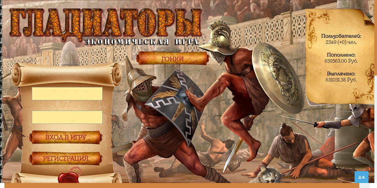 Игры от компании "Эталон" давно известны всем инвесторам, вкладывающим в них свои деньги не опасаясь понести чересчур большой убыток. К одной из таких игр относится и проверенная временем игра "Гладиаторы", которая уже не один год радует своих участников стабильной прибылью. Всё дело в том, что даже не окупившие своего вклада пользователи, которые оказались в убытке, получают в начале следующего сезона неплохую компенсацию, которая помогает им выйти в плюс в конце сезона. Понятное дело, что "Гладиаторы" - это такая же финансовая пирамида, как и все остальные экономические игры, хайпы и прочее. Однако у неё есть одно основное достоинство — честная администрация, которая не выгребает деньги в середине сезона, не прикрывает проект, всегда честно выплачивает весь резерв, постоянно находится на связи со своими вкладчиками и отвечает на любые вопросы и т.д. Именно по этой причине всем начинающим, да и не только начинающим инвесторам стоит повнимательней приглядеться к игре "Гладиаторы". Хотя