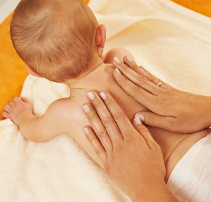 Первый год жизни малышу необходимо многому научиться и через многое пройти. И родители могут помочь в этот период жизни малыша. Когда малышу исполнился 2 недели и нет противопоказаний, можно начинать делать массаж и гимнастику ребенку. Делая гимнастику вы помогаете развивать двигательные навыки, укрепляете организм, справляться с коликами и снять тонус у малыша. Эффективней всего делать массаж и гимнастику вместе, тогда эффект будет заметнее. Делая массаж, вы подготавливаете малыша и разогреваете мышцы, гимнастика развивает мышцы малыша. Массаж лучше делать на твердой поверхности. Пеленальный столик, но если такого нет подойдет обычный стол или пол. Застелите его одеялом и пеленкой. Для массажа используйте специальное детское масло. Продолжительность занятий 6-8 минут, каждое упражнение повторять 3-5 раз. 1. Дыхательное упражнение. Слегка ритмичное надавливание на спину ребенка при передвижение своей ладони от шеи до поясницы. До освоения навыка держать голову вертикально, при прове