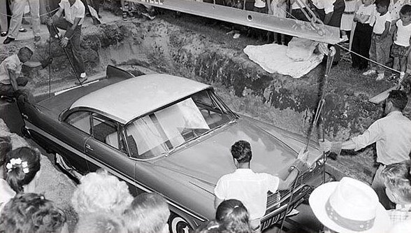 Что будет, если оставить машину в гараже на 50 лет? В 1957 году автомобиль Plymouth Belvedere концерна Chrysler закопали под улицей неподалеку от суда в городе Талса (штат Оклахома, США). Это была странная инициатива граждан города. Они устроили конкурс. В 2007 году машину нужно было торжественно вручить тому, кто угадает точное число жителей города, какими оно будет через 50 лет. Зачем машину закопали? Чтобы не попала вода и не нанесла ущерб. Ее погрузили в специальный гараж из бетонных стен. Plymouth Belvedere - культовый американский автомобиль. Элита 50-х! В 1953 году он уже имел полуавтоматическую коробку передач. В общем, хорошо в 1957 году жили американцы, если могли себе позволить разбрасываться дорогими тачками. В то время в советском союзе поступали куда мудрее, закапывая просто капсулы с посланиями. В 2007 году победил некий Рэймонд Хумбертсон. Его цифра в 384 743 была наиболее близкой к правде. В 2007 году население города достигло 382 457 человек. Но Рэймонд к тому мо