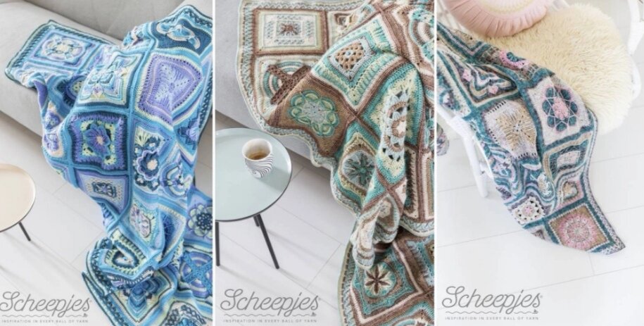 Раз в 1-2 недели мы будем вязать по одному квадрат. Правда каждый квадрат будет исполняться в трех цветовых вариантах. И в итоге соеденив их, получим плед. Предлагаю поучаствовать даже тем, кто освоил крючок недавно.