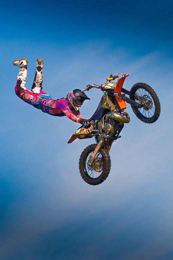 Мотофристайл – захватывающее зрелище, молодой и развивающийся вид спорта. Состоящий их головокружительных трюков, совершаемых во время полетов на большой высоте, этот вид спорта невозможен без участия мотоцикла. Но вместе с тем, он стоит очень далеко от мотоциклетной жизни, с философией дальних дорог и огромных мотоциклов. Так как у нас эта дисциплина мотоспорта только-только начала развиваться, различных баек вокруг него ходит немало. Представляем вашему вниманию 20 фактов о мотофристайле, которые мы разыскали и специально проверили на достоверность. А теперь несколько фактов о мотофристайле Факт 1. Мотофристайл отпочковался от мотокросса, когда некоторым гонщикам захотелось вместо большого количества маленьких прыжков совершать один, но такой, чтобы у зрителей волосы от ужаса шевелились. Надо признаться, им это удалось. Факт 2. Один из самых первых трюков - nac-nac - был перенесен из BMX спорта гонщиком Jeremy McGrath (1971 г.р.), легендой мотокросса 90-х. Количество его побед в м