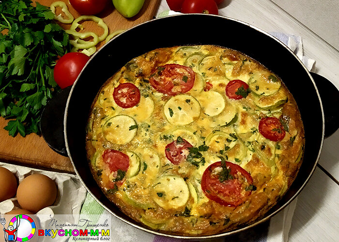 Калорий на 100 грамм: 60 ккал. Фриттата (Frittata) : итальянский омлет с овощами Ингредиенты: Приготовление: Ещё рецепты из кулинарного блога "О вкусном -м-м" смотрите здесь
