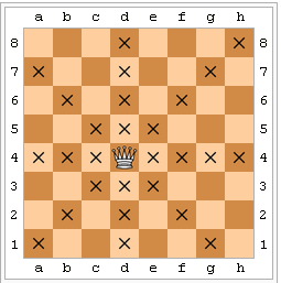 Каждая фигура в шахматах может атаковать в разных направлениях и на разное расстояние. Возьмем для примера самую мощную фигуру – ферзя.