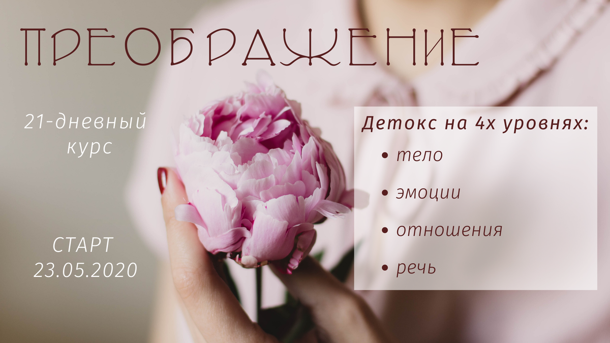 Сделайте свой шаг на пути к успешной и счастливой жизни! Курс ПРЕОБРАЖЕНИЕ - это гармоничный детокс на 4-х уровнях: