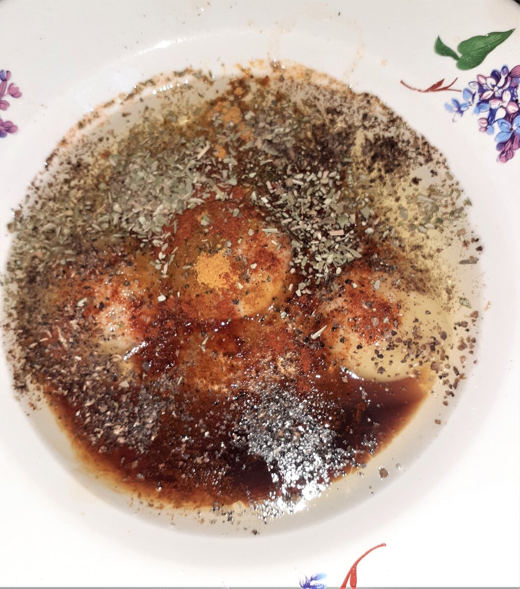 На завтрак у меня была шаверма с отварной куриной грудкой и свежими овощами, еще чашка кофе с молоком. Затем перекус - полпорции овсяной каши с черной смородиной. Обед - куриный суп с клецками. Второй перекус - творог. В течение дня - зеленый чай с лимоном и имбирем. А на ужин я приготовлю рыбу, жареную в кляре и салат с грушей. У меня сегодня пангасиус. Рыбу я порезала на порционные куски. Готовлю кляр: Разбиваю три яйца и добавляю соль, перец черный, перец душистый, паприку, орегано, кориандр молотый и соевый соус. Перемешиваю и добавляю муку. Кляр должен получиться по густоте как хорошая сметана. Кусочки рыбы обваливаю в муке, затем в кляре и на сковородку с разогретым маслом, обжариваю с каждой стороны по 3 минуты на среднем огне под крышкой. Готовлю салат: На порцию я взяла половину огурца, 1/4 часть груши такой же объем пекинской капусты немного петрушки, дольку лимона, несколько кристаллов морской соли и немного молотого перца, заправила соком лимона и 1 ст.л. оливко