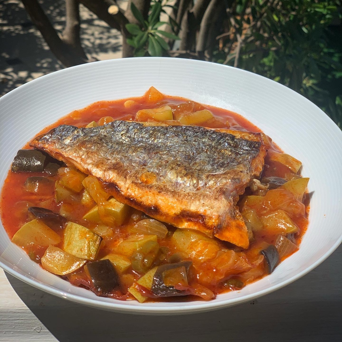 Принцип здорового питания - чем проще, тем лучше. Все овощи тушим. Можно их поджарить, но тогда повысится калорийность блюда и вредность. Протёртые томаты можно заменить натертыми свежими. Выбор за вами. Овощи выкладываем в форму для запекания. Сверху кладём рыбу. Рыбу выбирайте сами. Но лучше белую. А можно и без рыбы. Я обожаю гриль. Поэтому добавляю 5 минут гриля. Приятного аппетита. Колитесь, какую рыбу из белых любите вы?