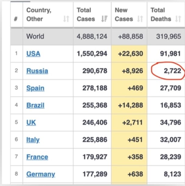 О том, как нас обманывают с данными о заболевших мы поговорили в этой статье. А сегодня мы поговорим о том, как всплыла ложь о количестве умерших. Начнем с того, что в России лучшая в мире медицина, гораздо лучше чем в любой европейской стране, даже в Германии.Именно к такому выводу мы неизбежно должны прийти, наблюдая официальные Российские данные по смертности от коронавируса и именно это на голубом глазу утверждают российские чиновники здравоохранения.Это наглая и открытая ложь. И очень опасная.Хотя многие говорили об очевидном занижении смертности в России пришлось дожить до международного скандала, чтобы власти понемногу начали признавать реальность. Еще в начале апреля вышел скандальный приказ Минздрава, в соответствии с которым от врачей от врачей требовали указывать в качестве причины смерти пациента другой дигноз, а не COVID-19, если только было у пациента какое-нибудь другое заболевание. Ну а где вы видели полностью здоровых людей? Еще в апреле глав врачи Московских больниц,