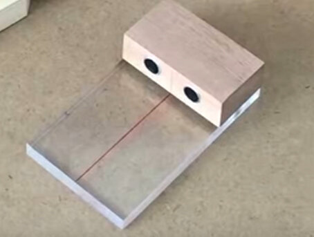 Здравствуйте, дорогие читатели. В этой "быстрой" статье мы рассмотрим изготовление кондуктора для шкантов. Мастер класс взят у Gökmen ALTUNTAŞ, ссылка на видео будет дана в конце статьи, как всегда описание буду делать свое, по ходу работ, фото раскадровку буду брать из видео автора. Нам понадобятся четыре заготовки. Брусок размером (56х30х18мм), кусок оргстекла (90х56х8мм), две стальные трубки внутренний диаметр 8 мм, наружный 10 мм, длиной 30 мм. На торце бруска делаем разметку, от края отмечаем 16 мм, ставим метку, от метки отмечаем 24 мм, ставим метку. Либо от одного края отмечаем 16 мм и от другого края отмечаем 16 мм, между метками должно быть 24 мм. Высверливаем сквозные отверстия под размер стальных трубок. Подгоняем брусок под размер 56х30х18 мм. Готовим стальные трубки. Забиваем их в отверстия. Кусок оргстекла прикручиваем к бруску, предварительно сделав каналы. Отмечаем красным маркером середину оргстекла, все, кондуктор готов. Подписываемся, лайкаем :) ну или дизлайкаем, к