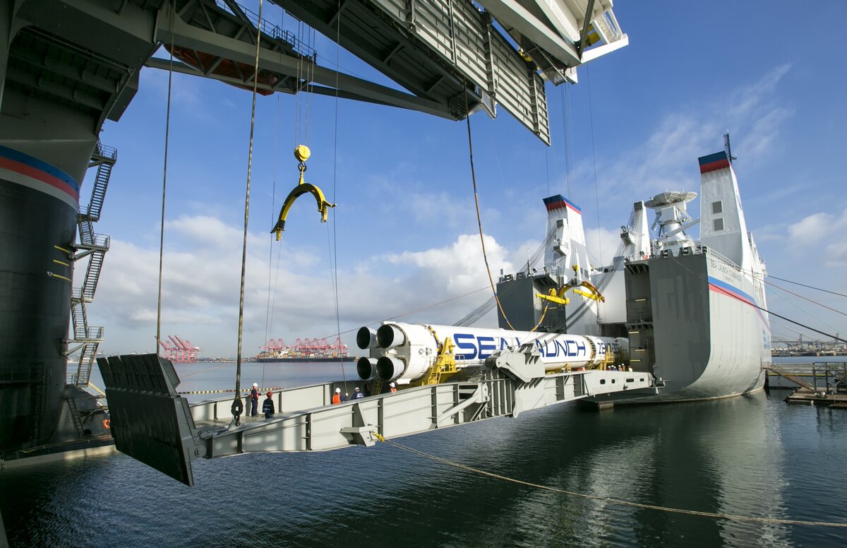 Морской старт базировался на солидной ракете среднего класса "Зенит", жидкостной, что важно, потом поймете почему и двух гигантских кораблей, один из которых служил космодромом, второй этот космодром обслуживал. Кораблики, как мы уже говорили были не маленькие и их постройка обошлась в миллиарды долларов.